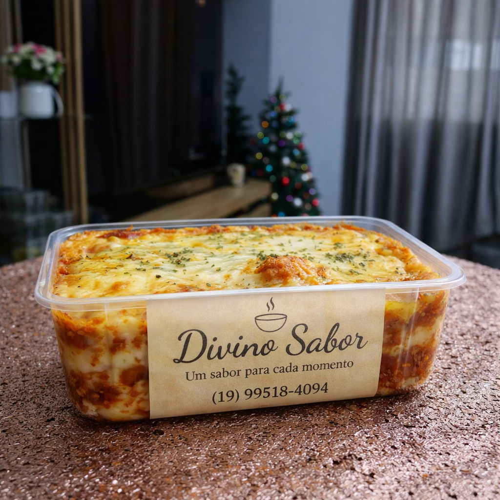 Lasanha de CarneMassa fresca + carne moída temperada + molho caseiro + muçarela gratinada.(500ml) R$ 31,00 / (750ml - Família) R$ 42,00
